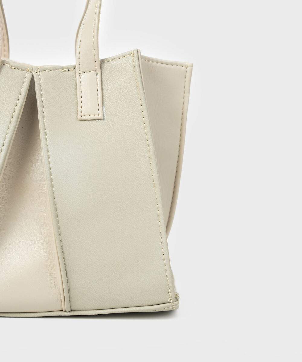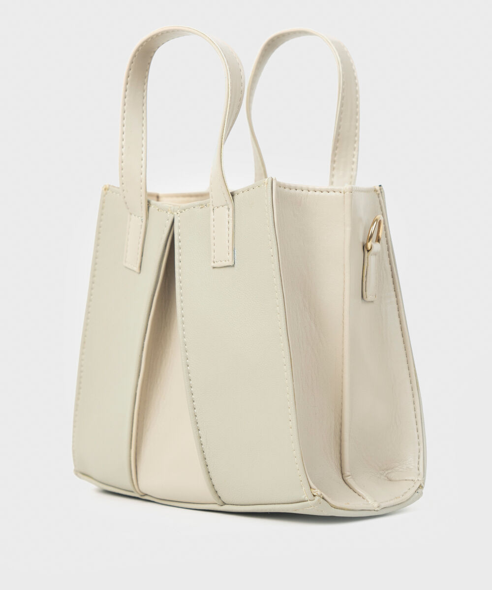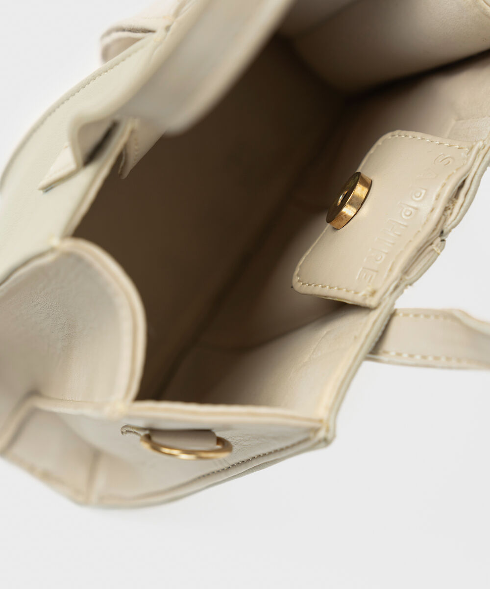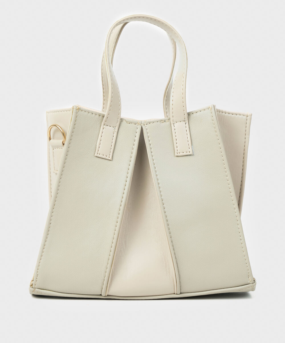 Make a statement with our off white pleated top handle bag with a magnetic closure.