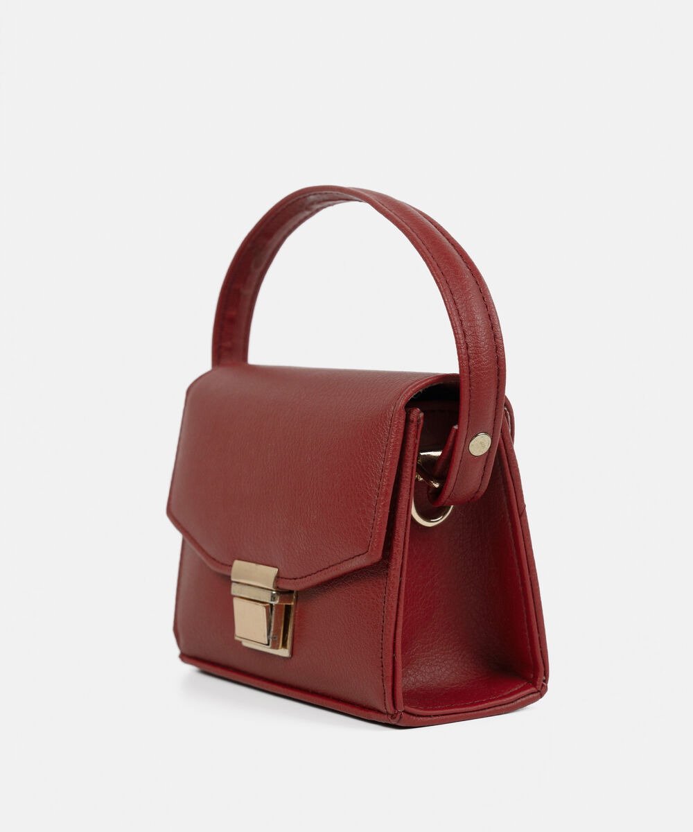 Perfect your style with our stylish maroon mini top-handle bag featuring a tuck-lock flap closure for a secure finish.