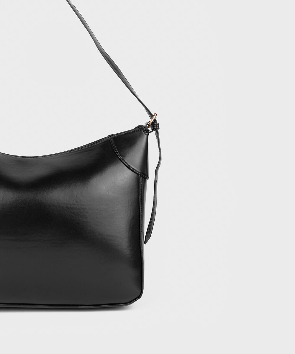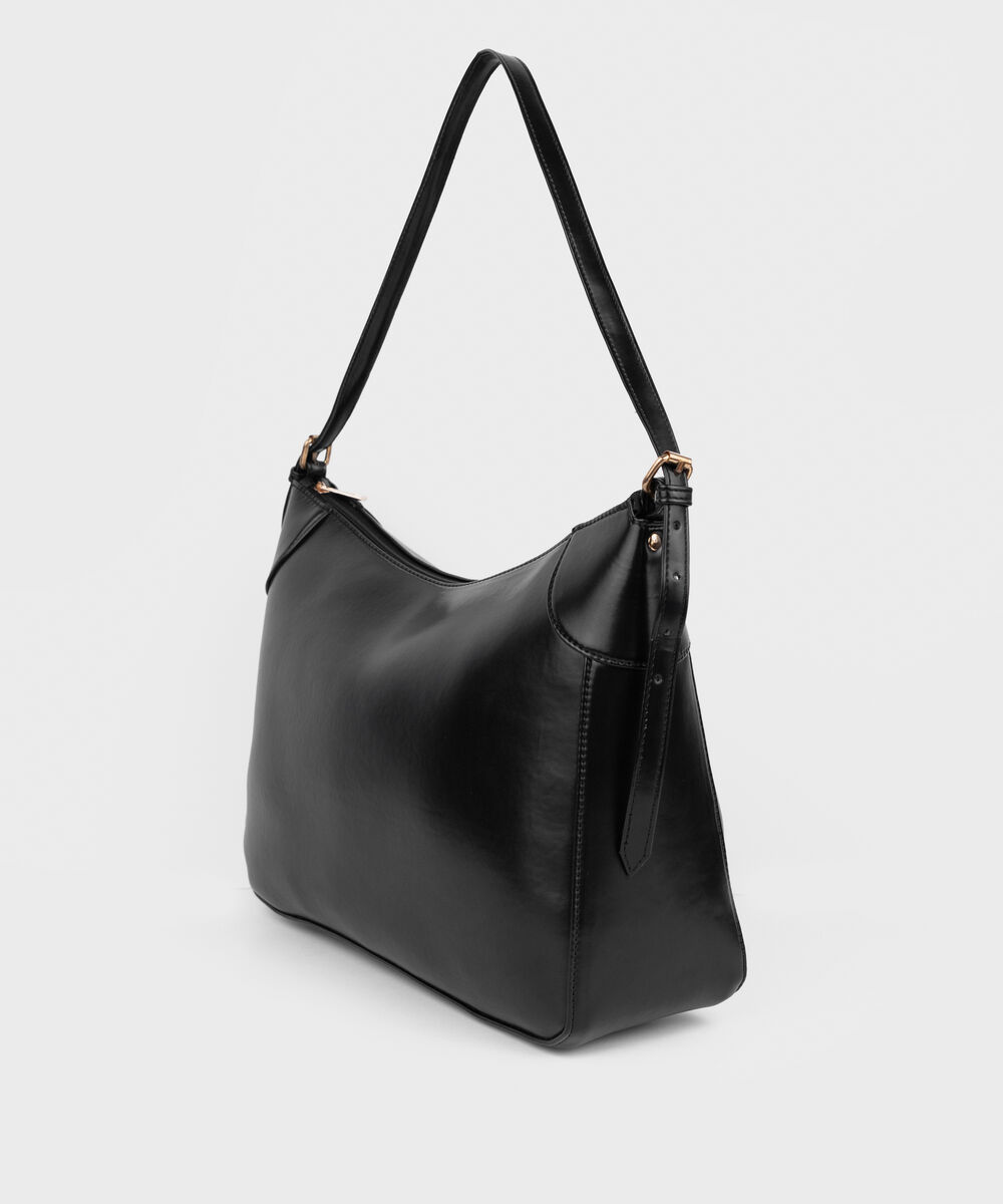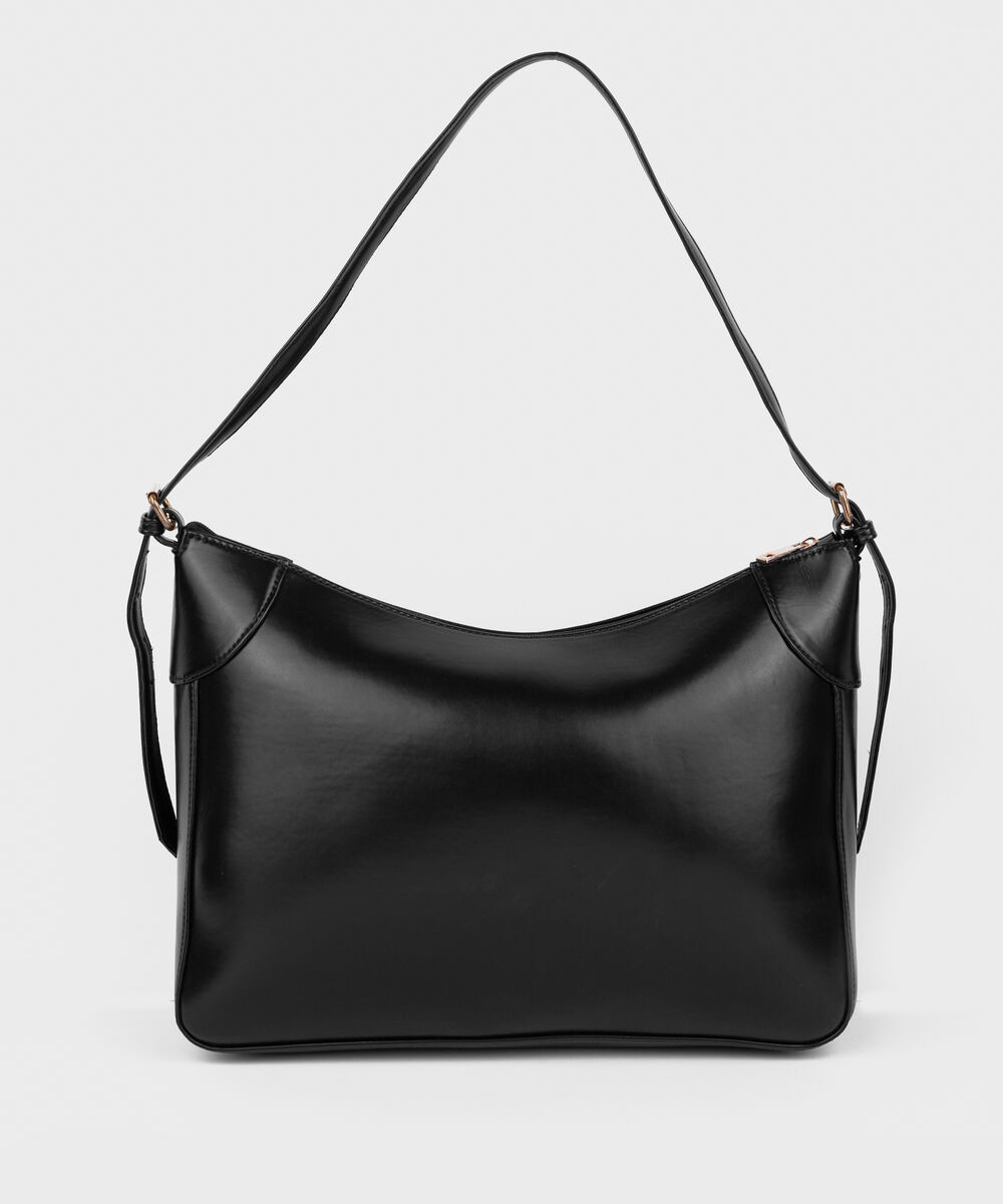 Perfect your style with our black elongated tote bag with a zip closure.