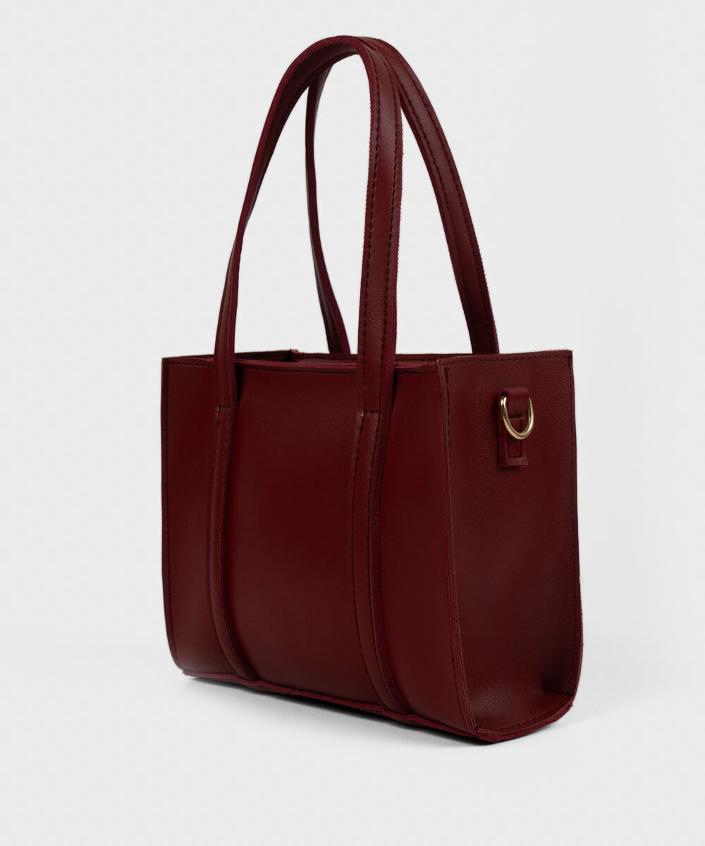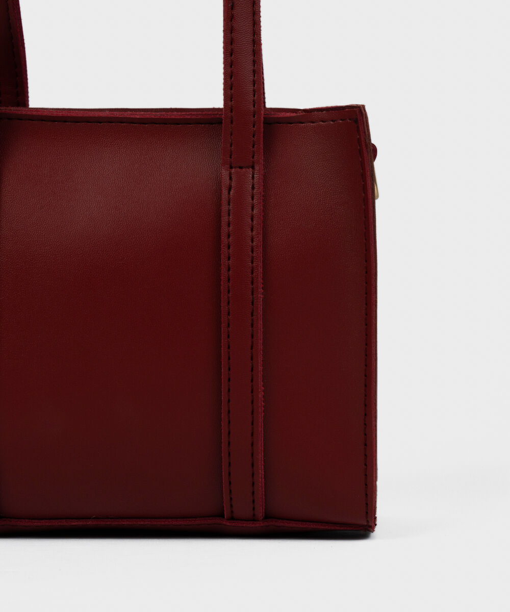 Make a statement with our maroon top-handle bag, complete with a zip closure for secure and stylish storage.