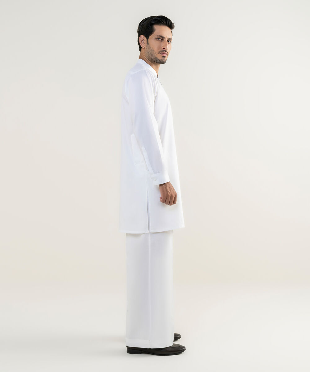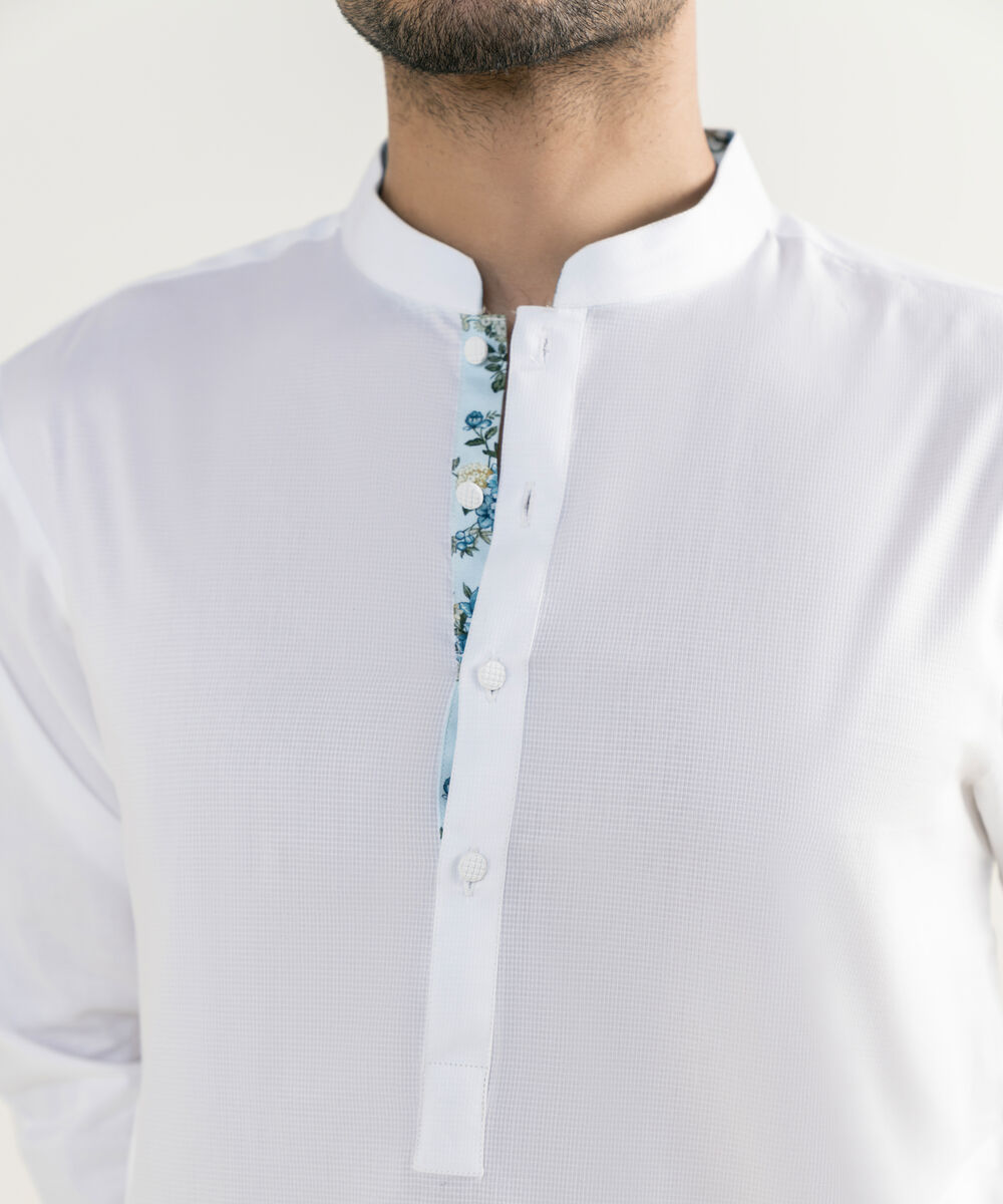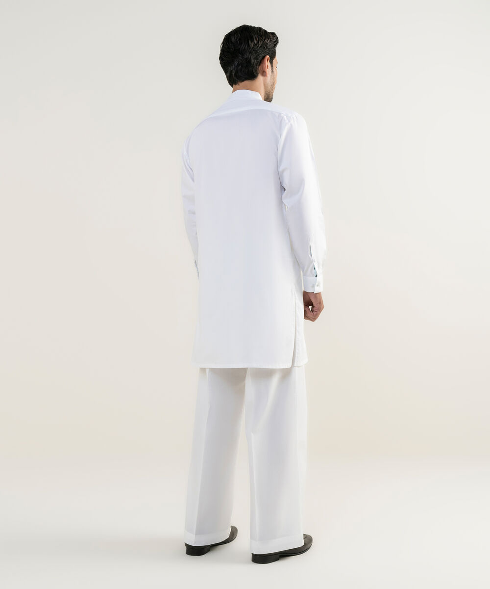 Solid Plain Front, Solid Plain Back, Band Neckline, Standard Placket, Cuff SleevesColour: WhiteFabric: Cotton