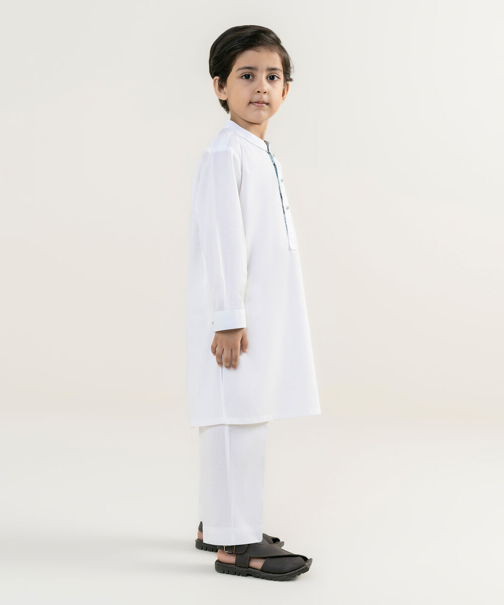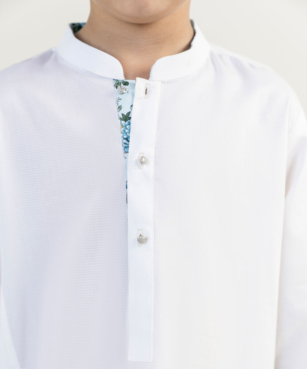 Solid Plain Front, Solid Plain Back, Band Neckline, Standard Placket, Cuff SleevesColour: WhiteFabric: Cotton