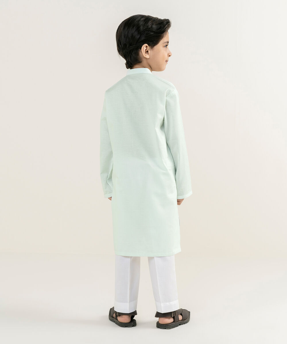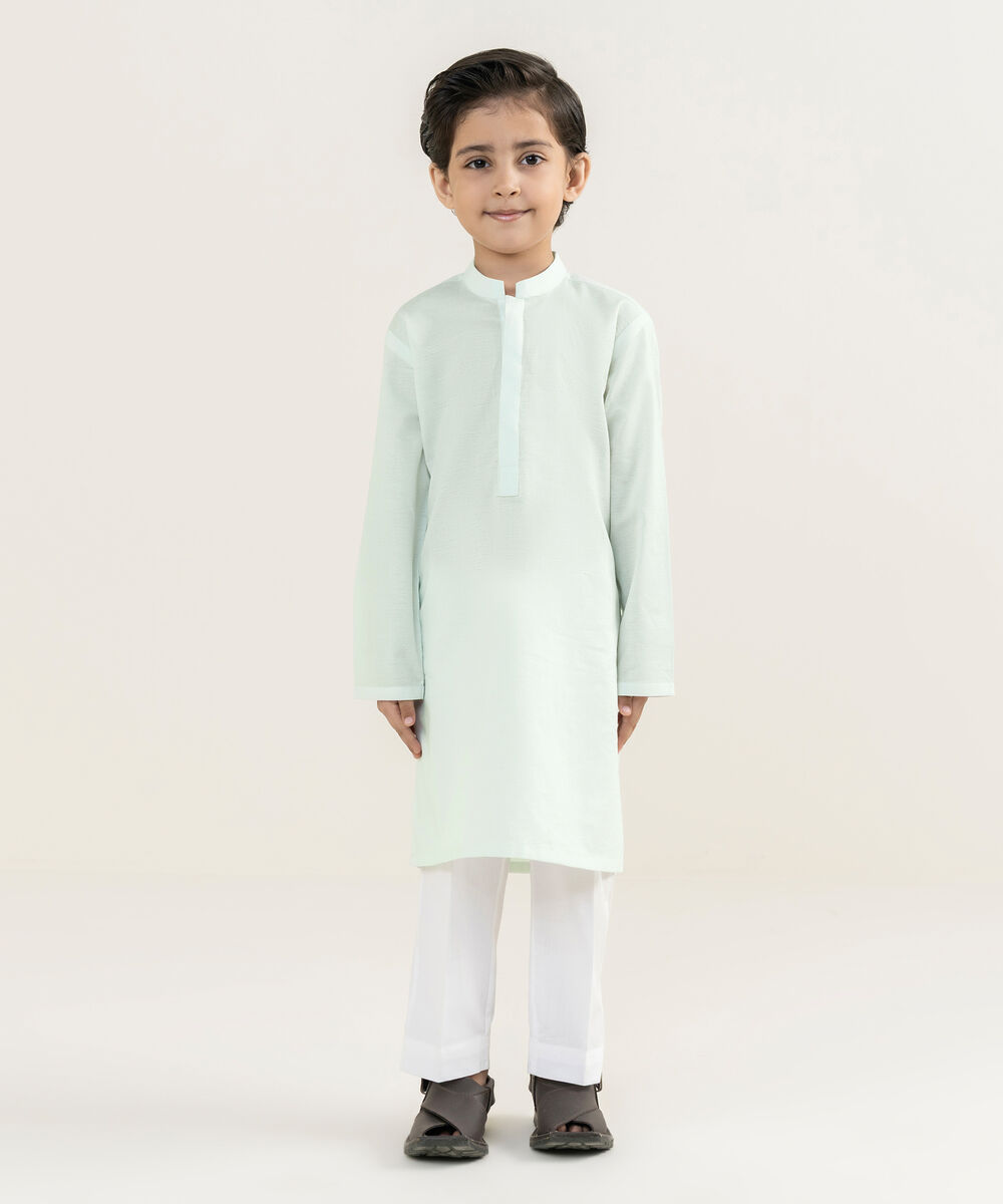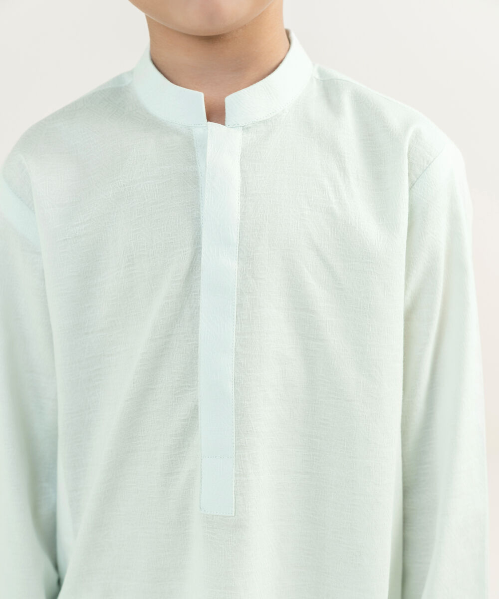 Dress your little one in our mint cotton jacquard kurta.