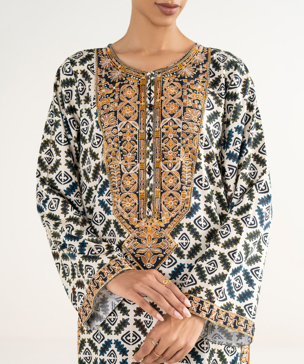 Embroidered Cotton Satin Shirt