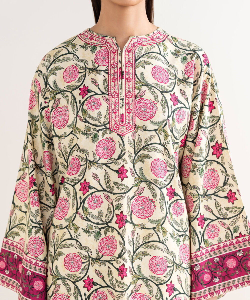 ShirtPrinted Lawn Shirt 3mEmbroidered Neckline 1pcFabric: LawnColour: Multi