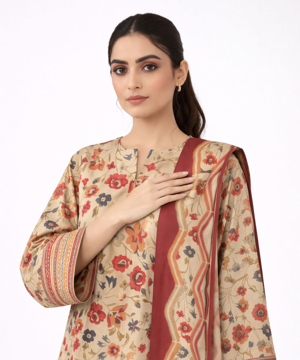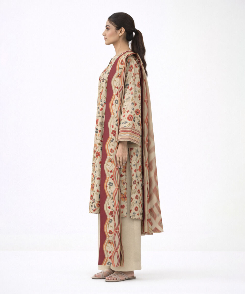 3 Piece - Printed Khaddar Suit