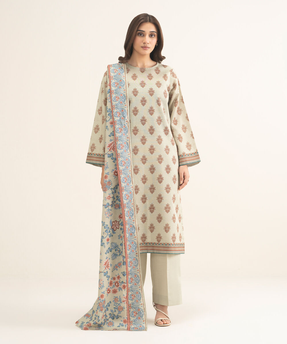 3 Piece - Printed Khaddar Suit
