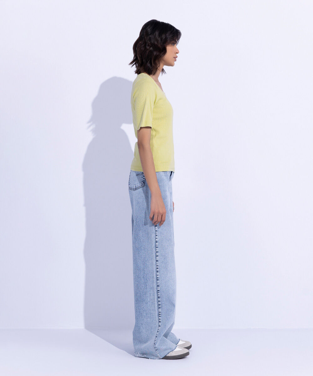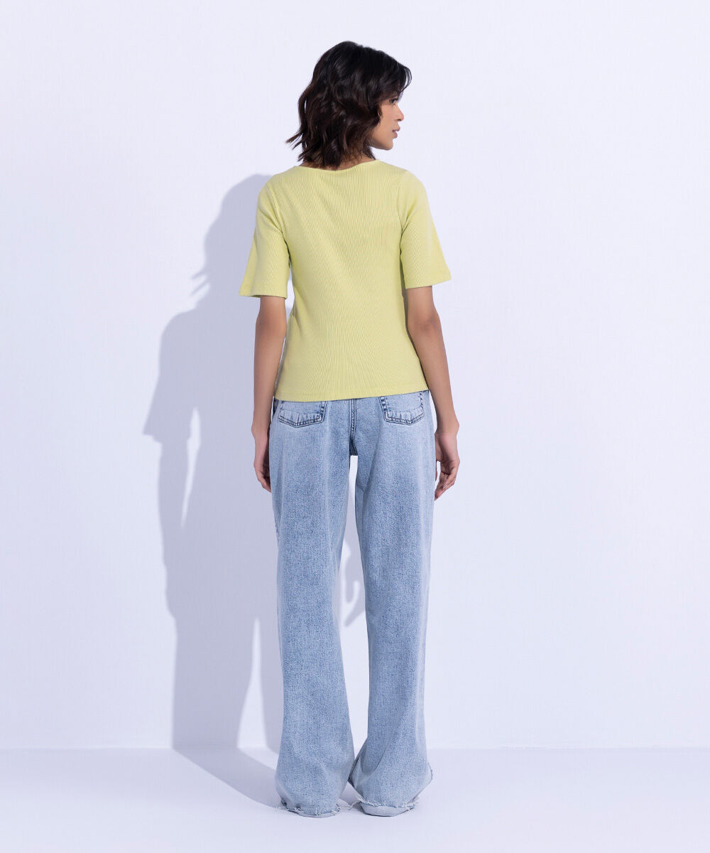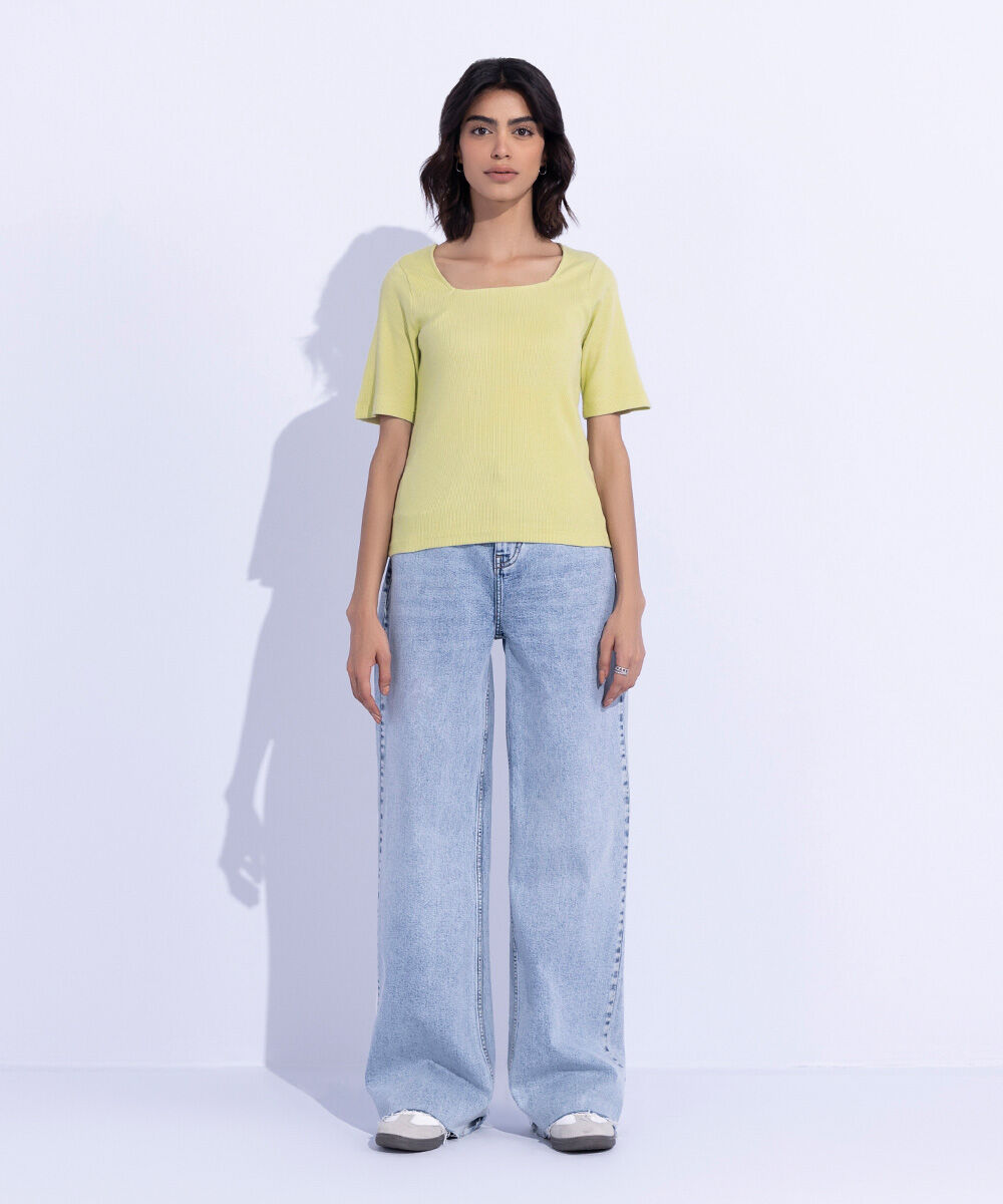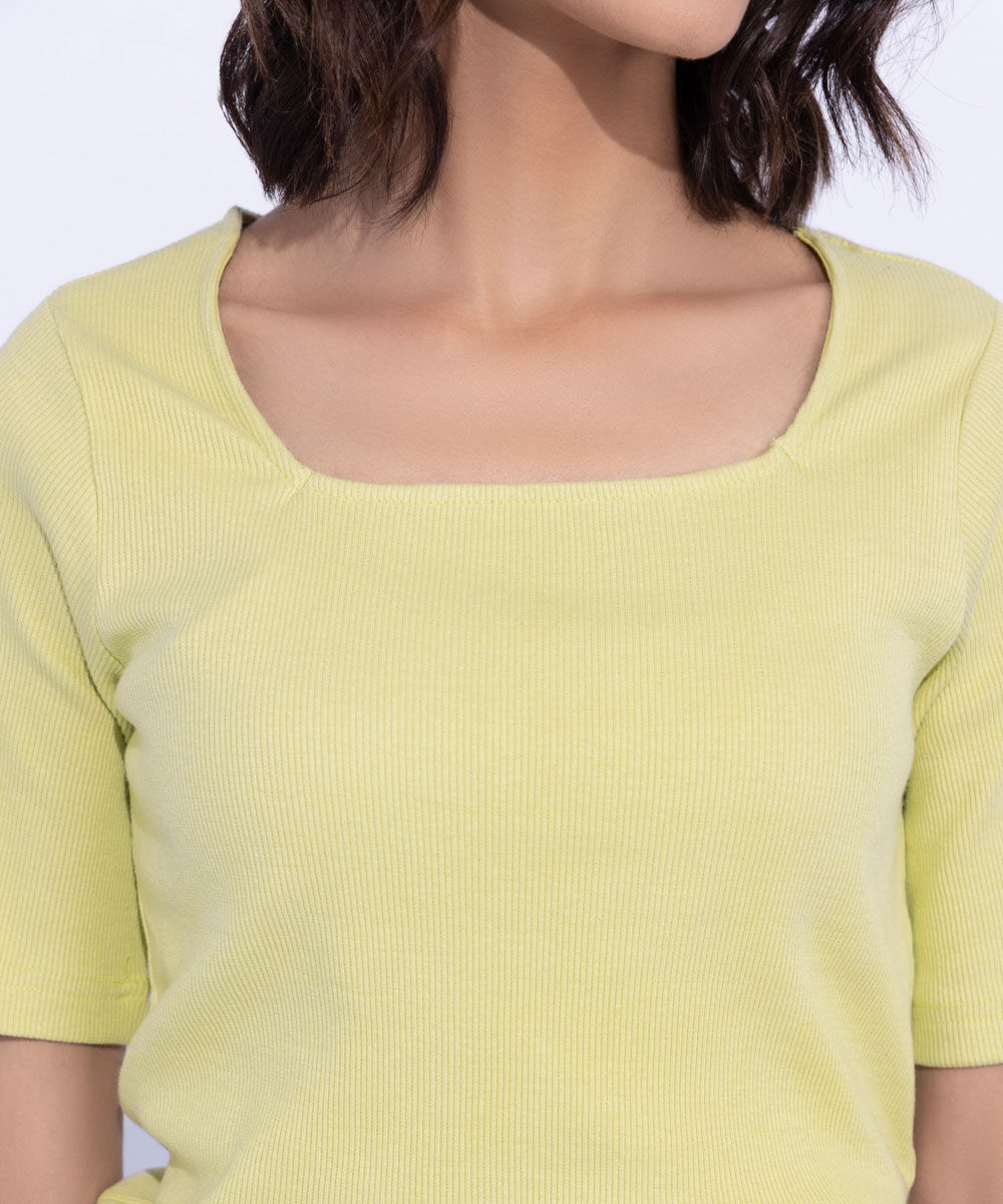 Slim fit square neck top in rib fabric with short sleeves.