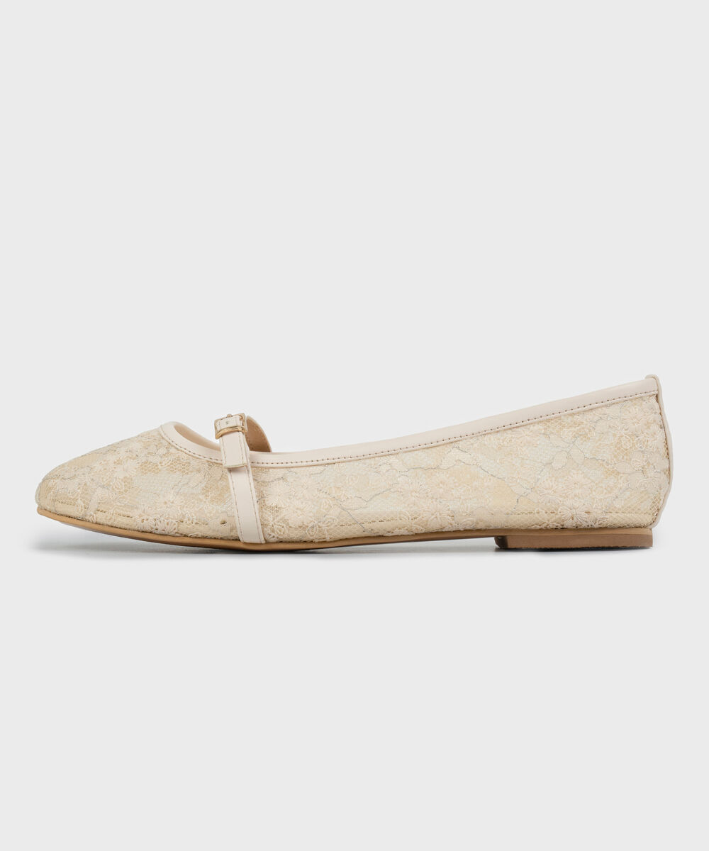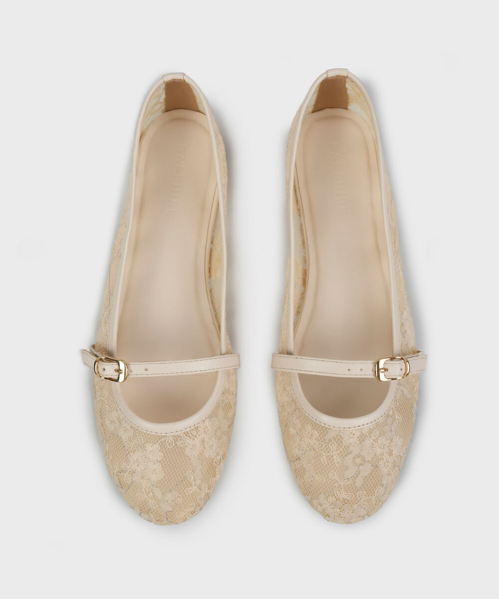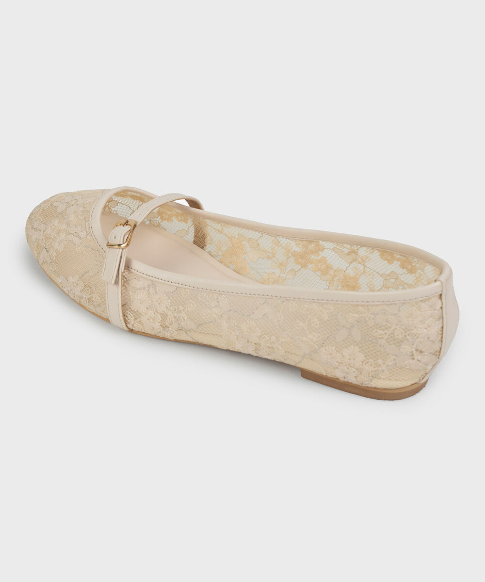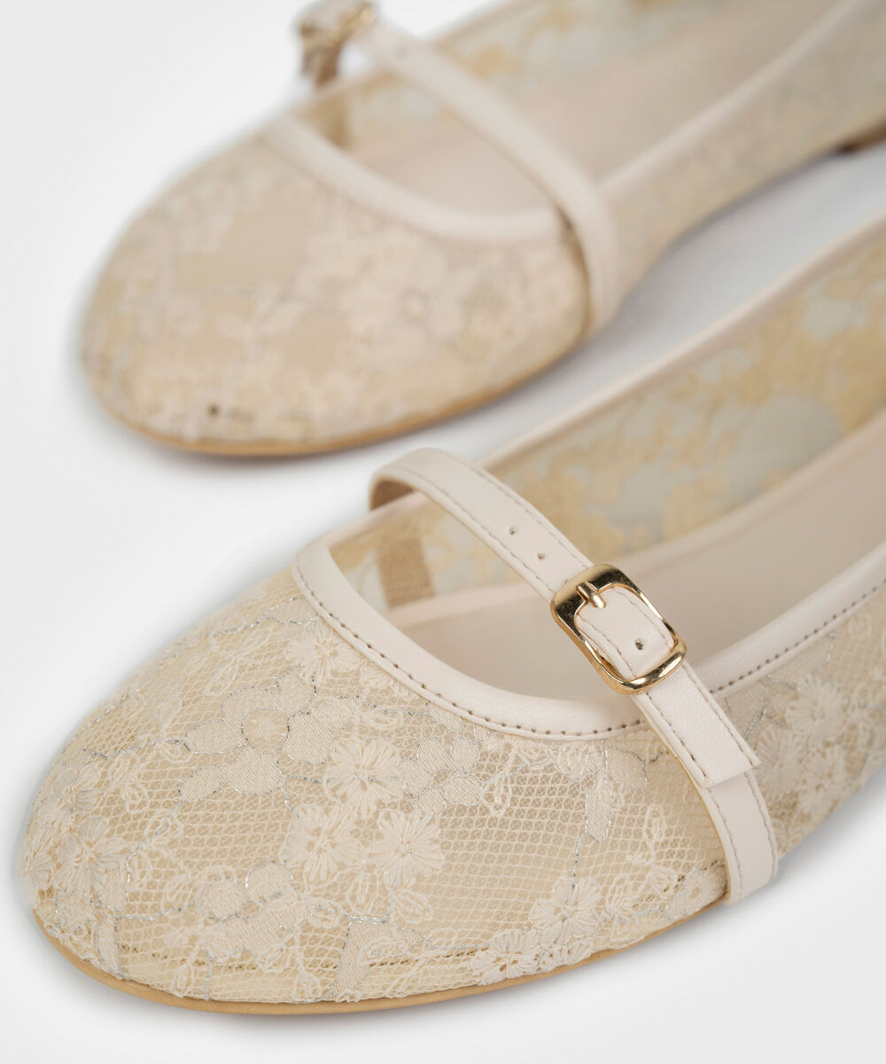 Add a delicate touch to your look with our beige round-toe Mary Janes in floral sheer net, finished with a padded insock for lasting comfort.