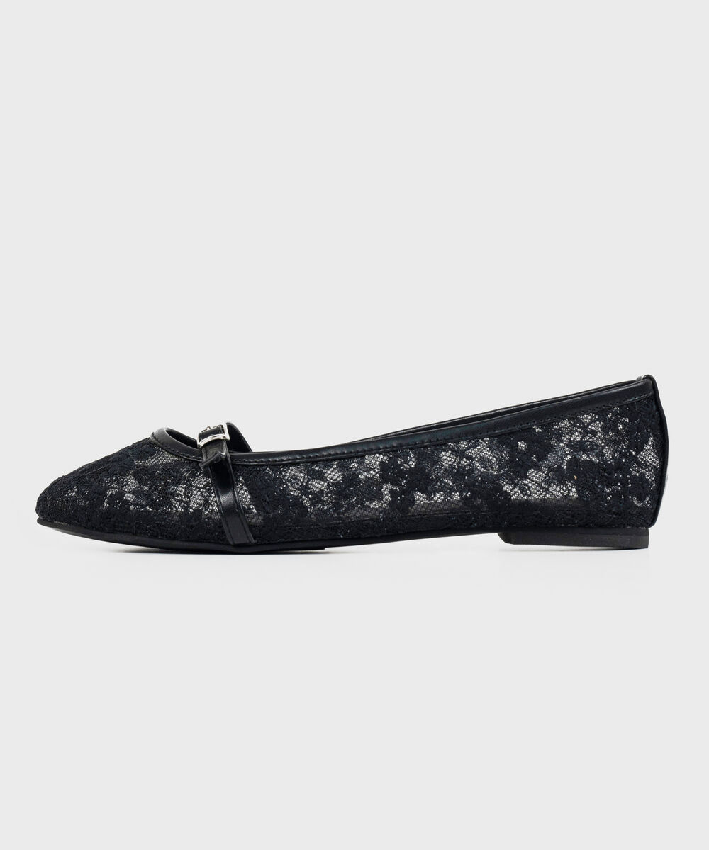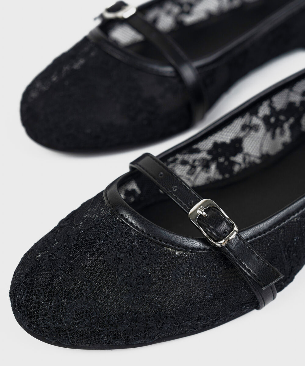 Add a delicate touch to your look with our black round-toe Mary Janes in floral sheer net, finished with a padded insock for lasting comfort.