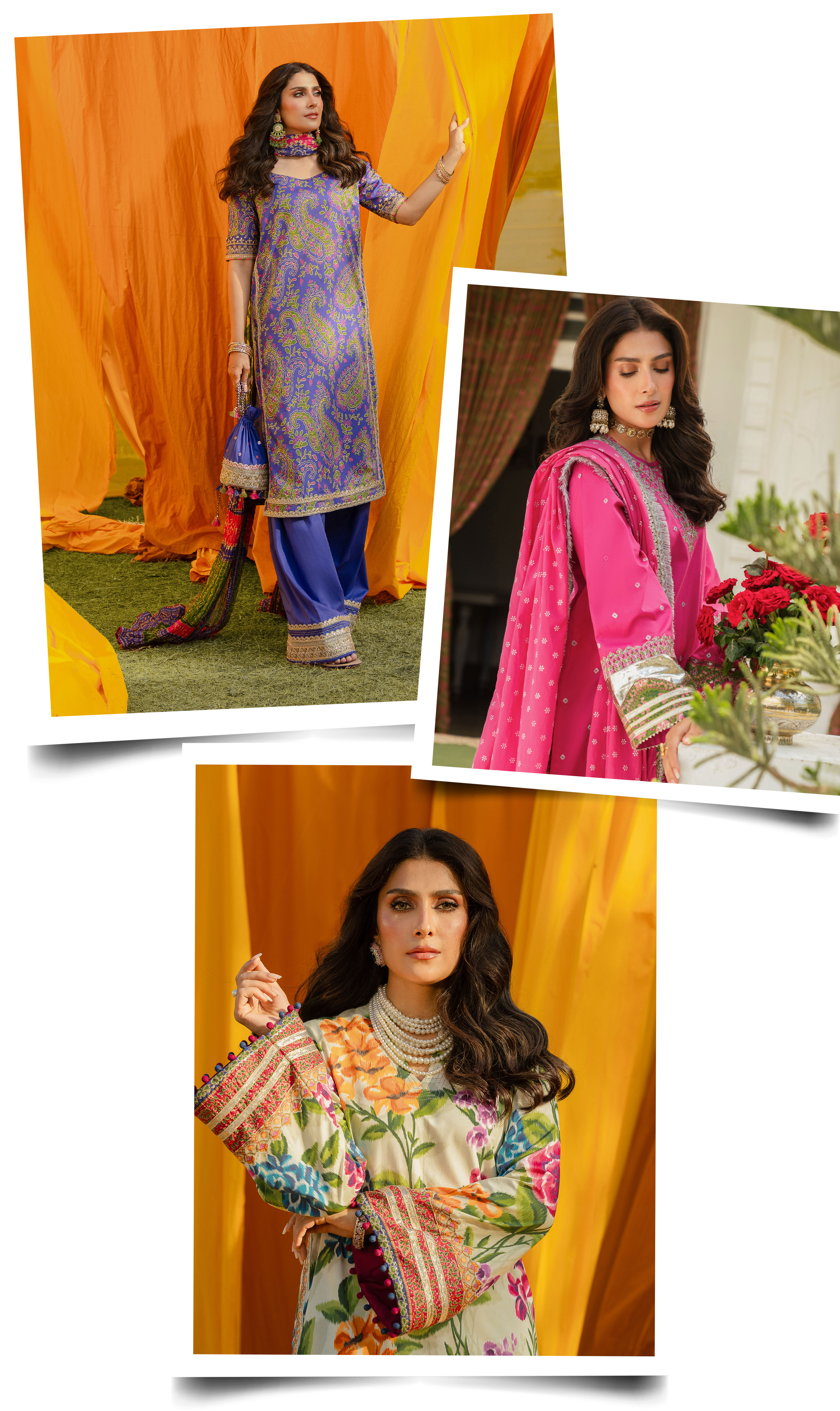 Explore a tapestry woven with joy, nostalgia, and warmth this Eid-ul-Adha. Whether you prefer soft, breathable fabrics that carry you through a long day of preparations or desire vividly embellished outfits, these designs move seamlessly with you.