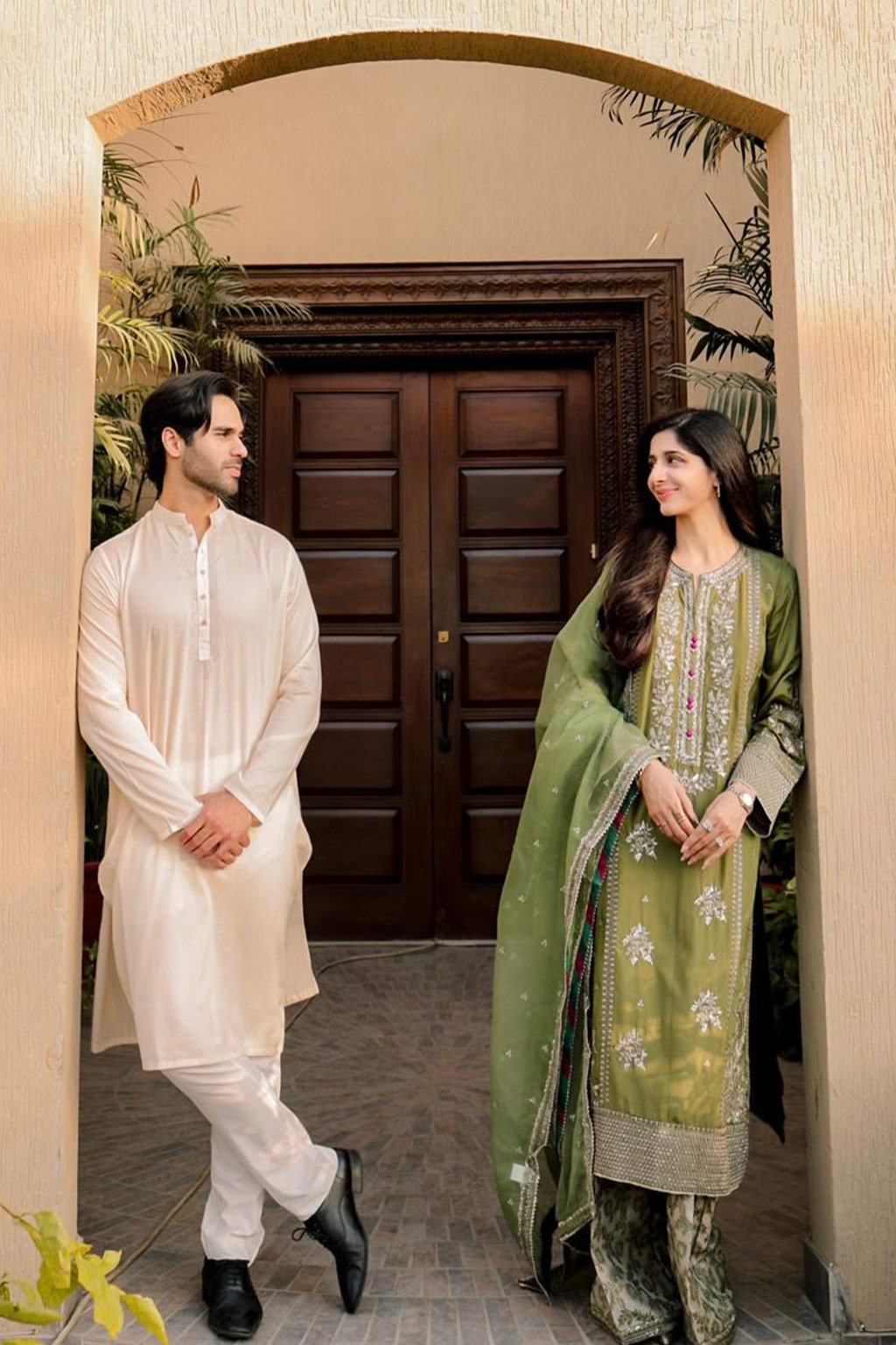 This Eid, celebrate togetherness, love, and new beginnings with our Couples Edit and take festive style inspiration from your favourite newlywed celebrity couples. Whether you’re captivated by Mawra Hocane and Ameer Gilani’s traditional bespoke ensembles in enchanting shades of green and white, exuding timeless grace, or drawn to Saim Rehman and Amna Riaz’s vibrant, playful looks, their joy radiating against the glowing sunset, there’s a story in every silhouette.